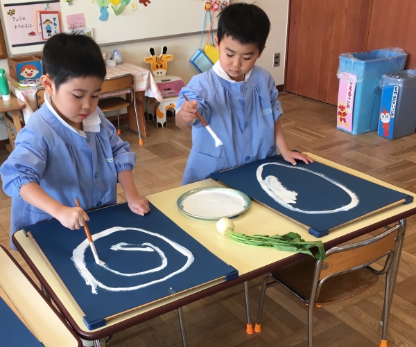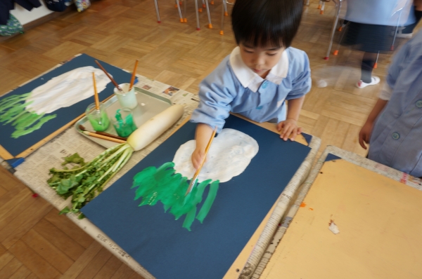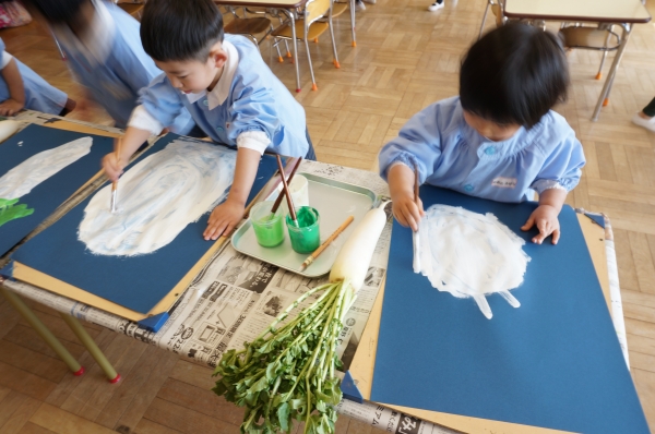 ちゅうりっぷ組は大根を、たんぽぽ組はかぶを描きましたよ☆