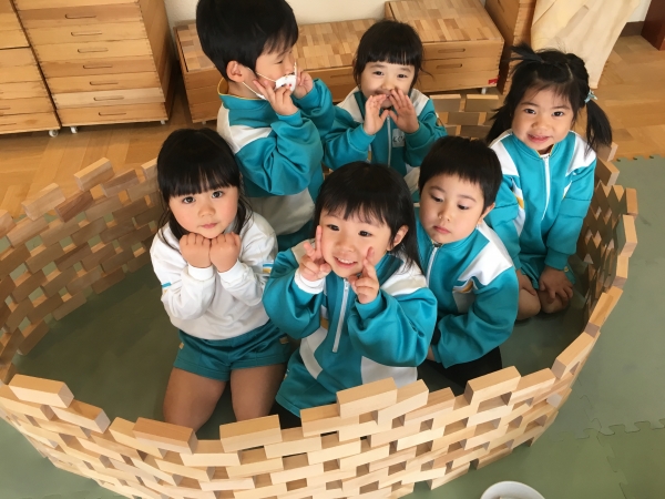 クラスのお友達と遊ぶつみ木遊びも今年度最後を迎えました。