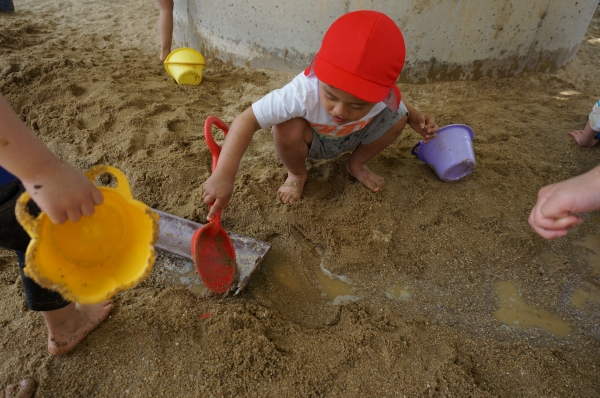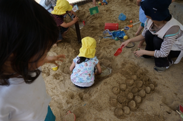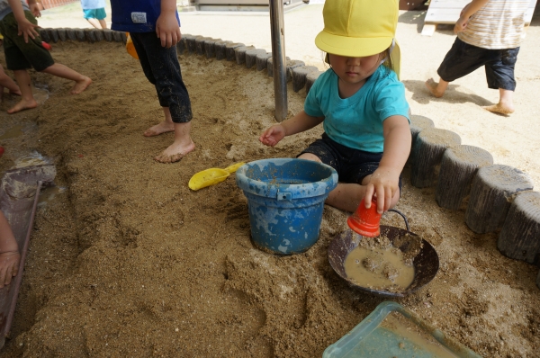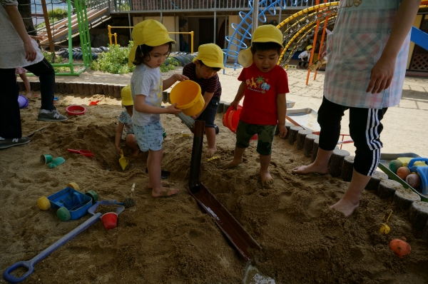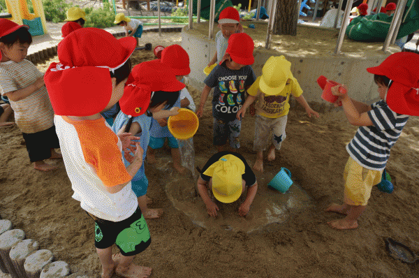 砂場の温泉ごっこでは、