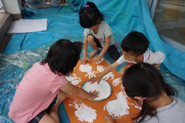 さて、今週は各クラスえのぐを使って「ぬたくり遊び」を行いました。