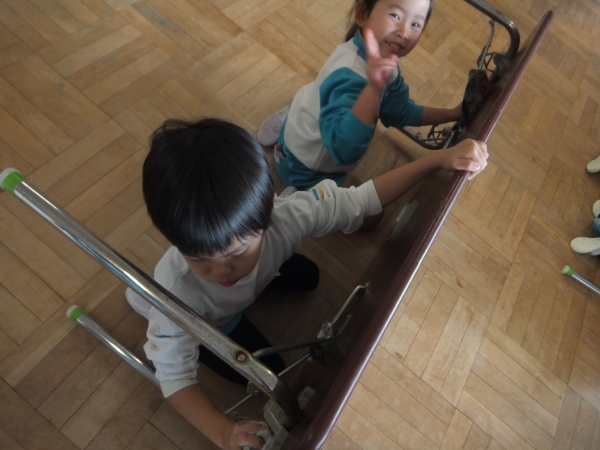 一人1枚雑巾を握りしめて、子どもたちが普段から使っているお道具箱や椅子、机などをピカピカに磨きました!