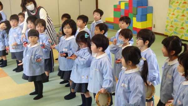 今回初めてちゅうりっぷ組とたんぽぽ組は合同で合奏の練習をしました。